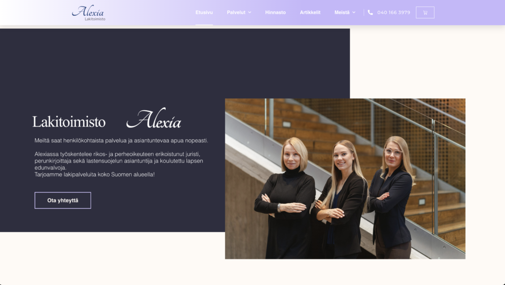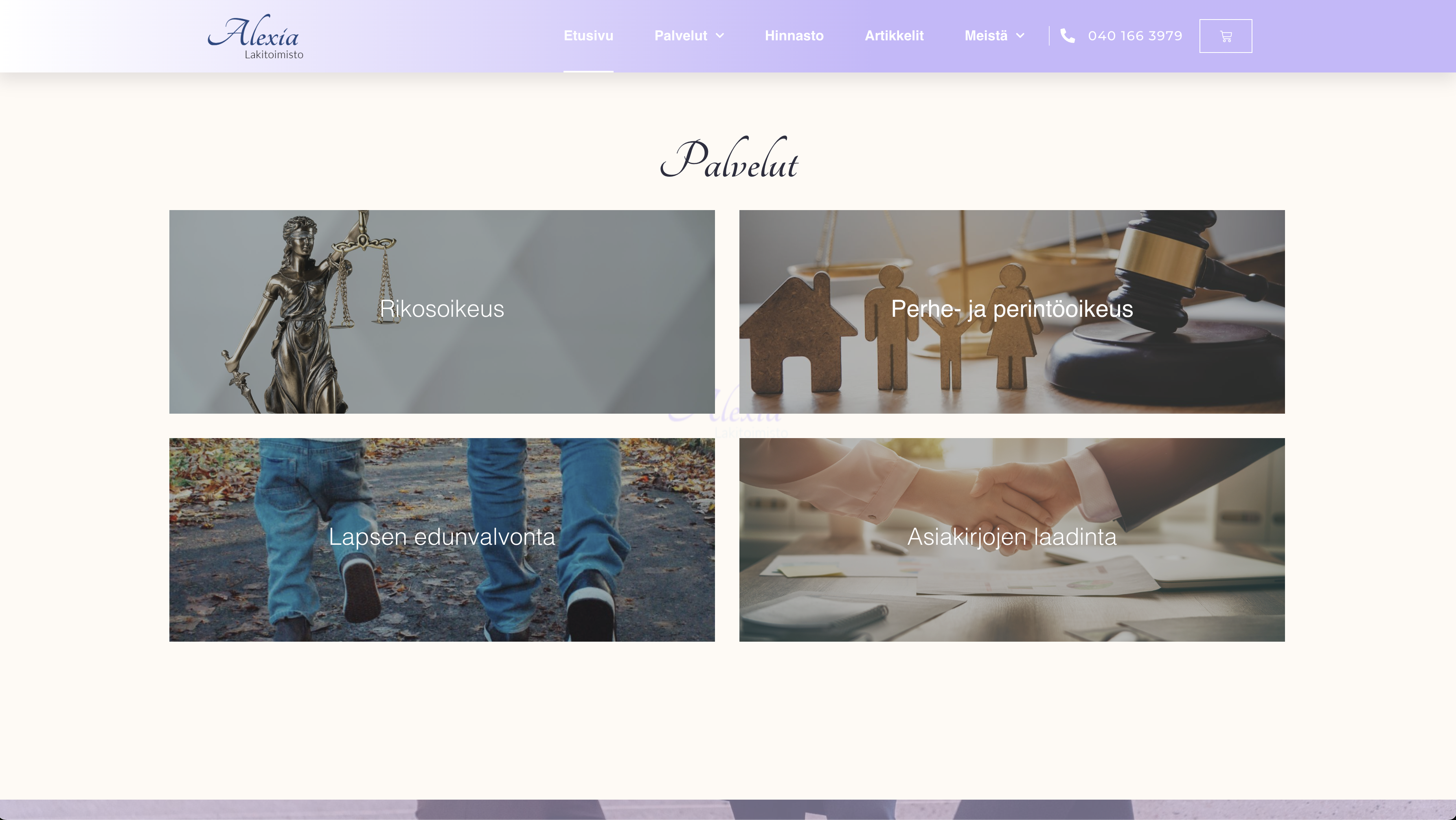 Alexia is staffed by a lawyer specializing in criminal and family law, a real estate agent, a child protection expert, and a trained child guardian. We offer legal services throughout Finland!