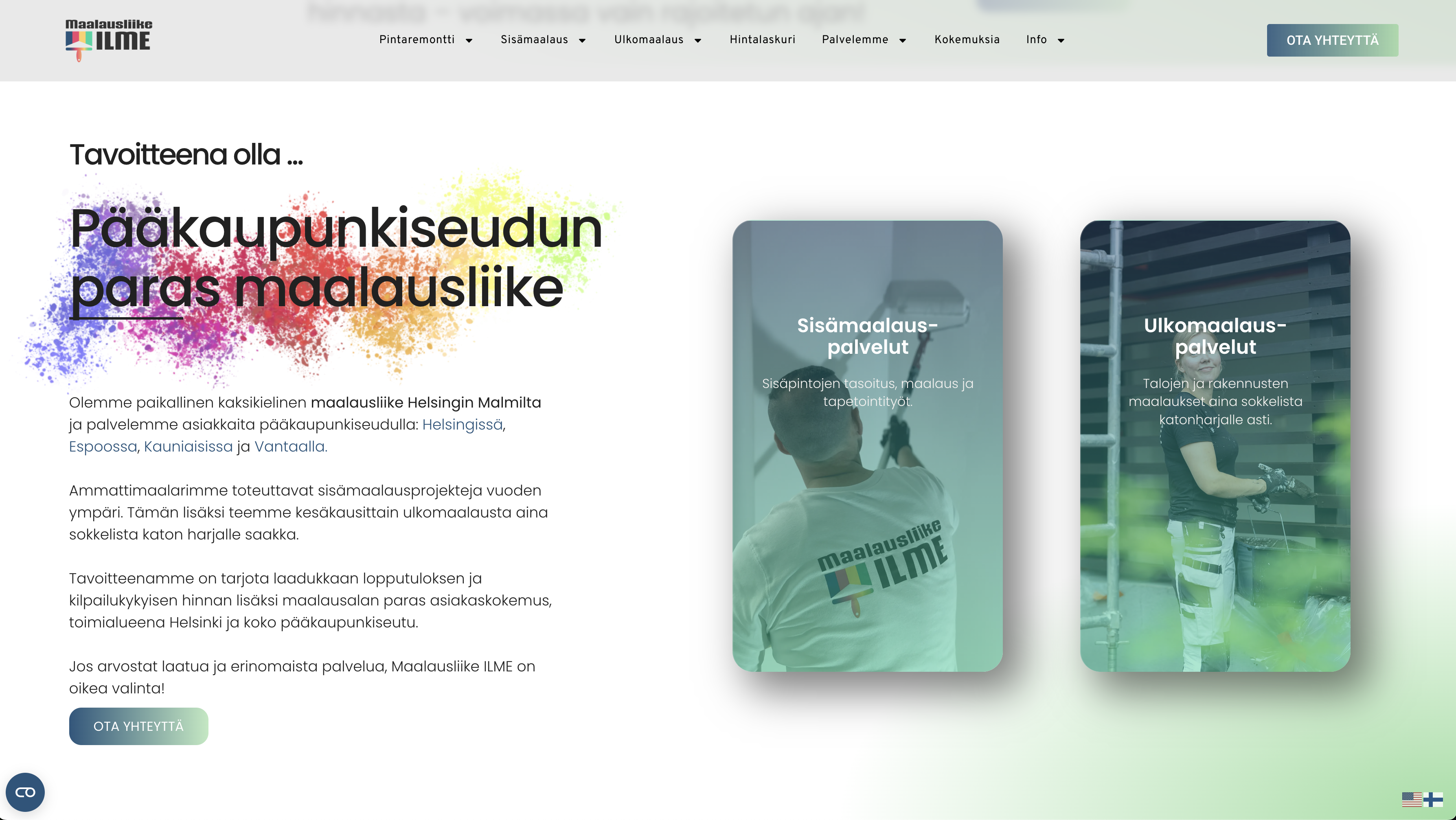 Maalausliike Ilme is a local bilingual painting company from Malmi, Helsinki , and we serve customers in the Helsinki metropolitan area.